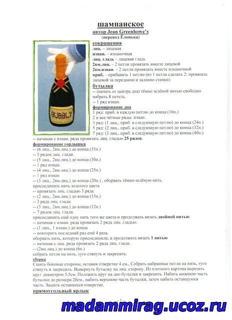 | $IMAGE1$девочки здравствуйте!очень нужно описание вязания бутылки шампанского !