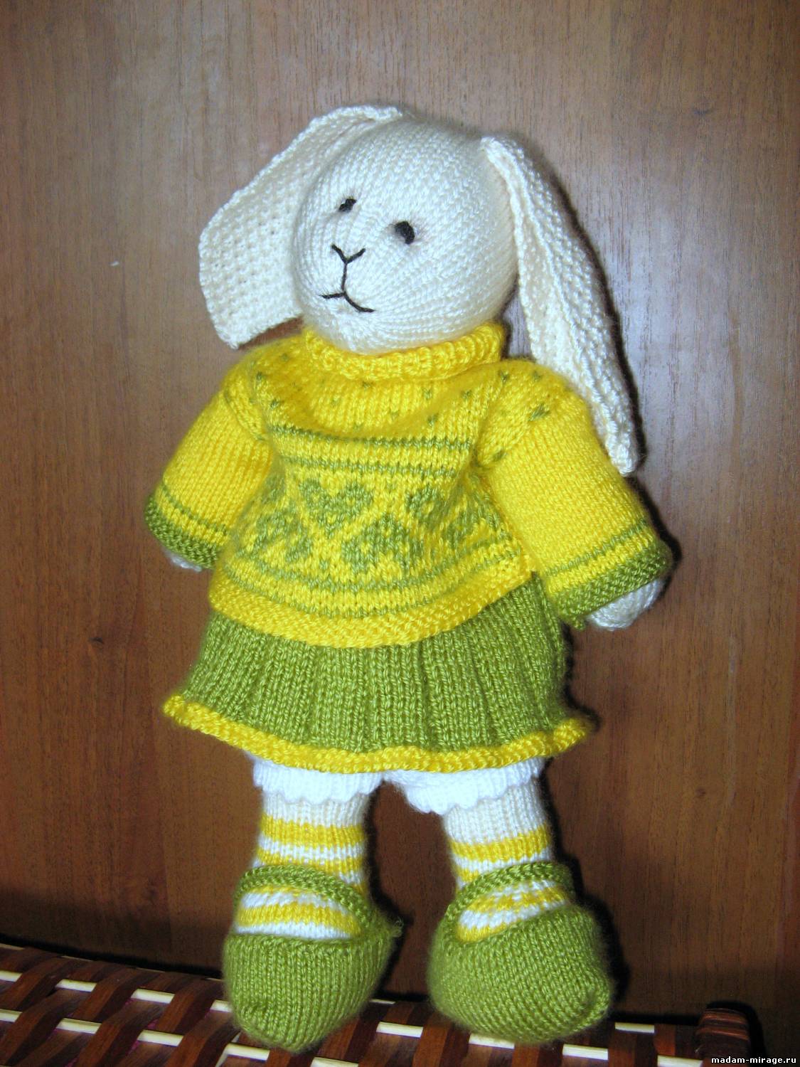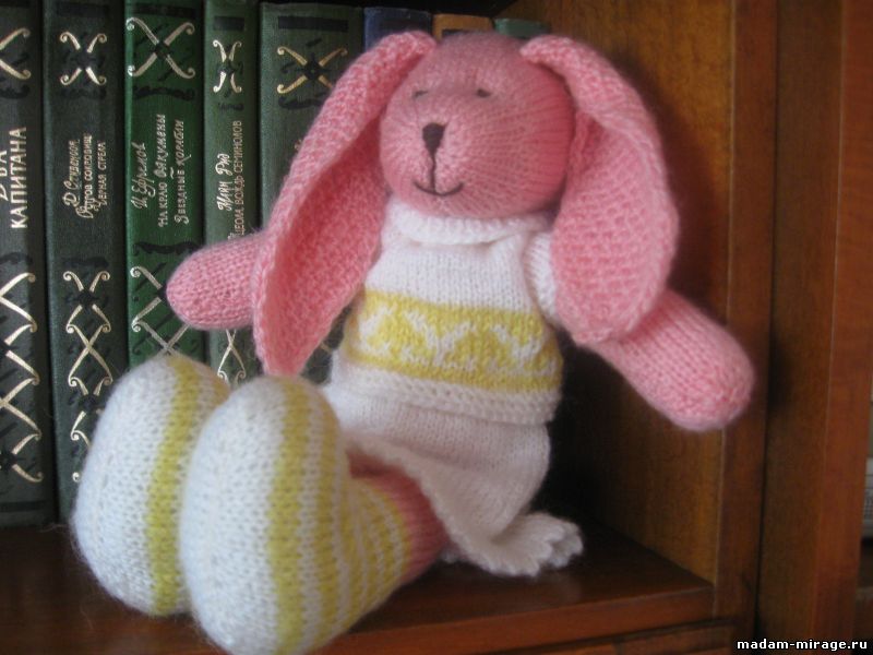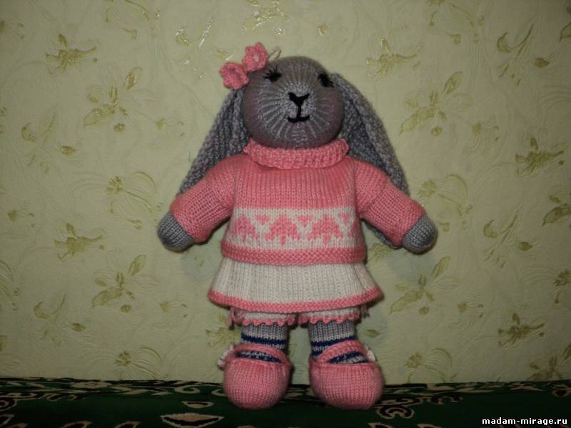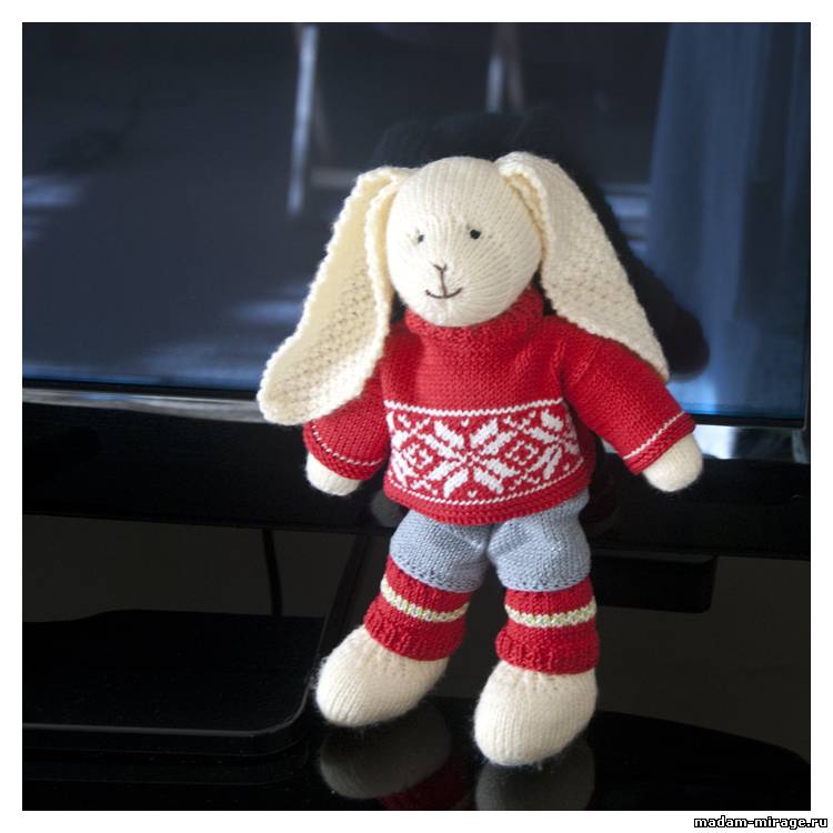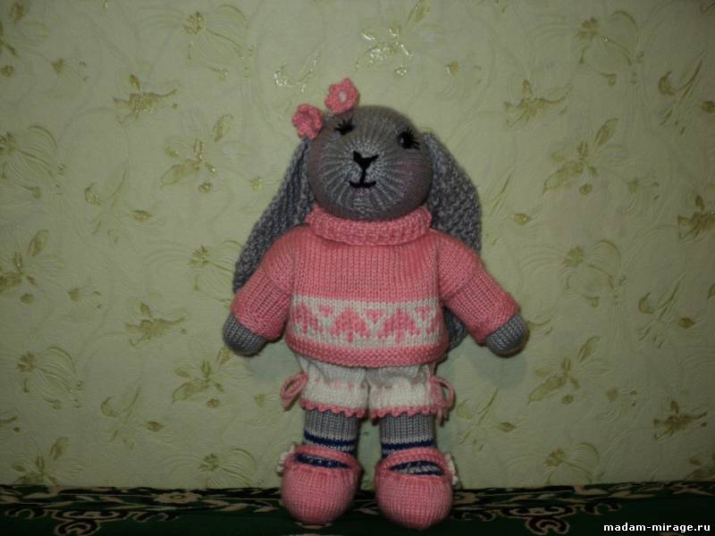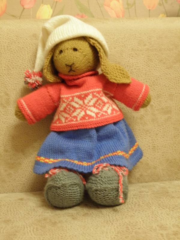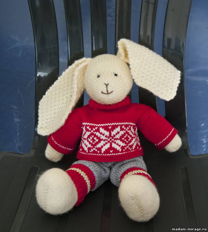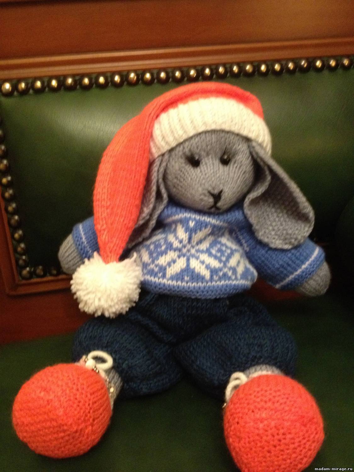 | Огромное спасибо за онлайн! Когда я увидела этого зайку, то решила научиться вязать спицами! Вот мой зайчишка - мальчишка !