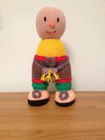 Руки (2 одинаковых) Начиная с нижнего края руки нитью телесного цвета набрать 12 петель. Ряд изнаночными. Следующий ряд. Прибавка в каждую петлю. (24) Начиная с изнаночного ряда, 11 рядов ЛГ. Оборвите нить телесного цвета и присоедините светло-жёлтую нить для рукава. 22 ряда ЛГ. Формирование верха. Продолжать ЛГ и закрыть 2 петли в начале следующих 2-х рядов. (20) Убавить 1 петлю в начале следующего и каждого последующего ряда пока не останется 10 петель. Следующий ряд. (2 вместе) до конца. (5) Закрыть. Соединить концы ряда каждой руки от набранного края до формирования верха. Сшить через край петли наборного края каждой руки. Вывернуть на лицевую сторону и набить руки и предплечье, плечо набивается слегка. Пришейте открытый край руки к кукле, закрытым краем чуть ниже шеи Манжета. (2 одинаковых). Нитью светло-жёлтого цвета, соответствующего цвету рукава набрать 24 петли и провязать 3 ряда ЛГ. Закрыть. Сшить вместе концы рядов каждой манжеты. Вывернуть на правую сторону. Пришить манжеты вокруг нижнего края рукавов.