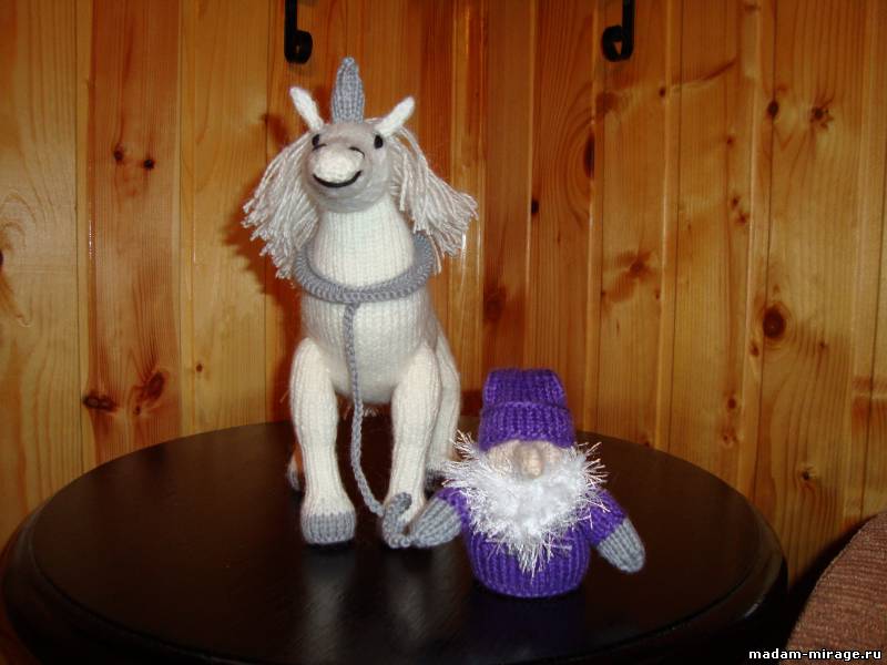 | Очень жалко, что он-лайн по таким хорошим игрушкам зачах. Я все-таки довязала и хочу выставить свой поэтапный отчет. Помучилась с единорогом, пришлось перевязывать тело, несколько раз перешивала ноги, он получился не совсем такой, как хотелось, к тому же довольно упитанный. Но все же игрушки чудесные. Очень хочется посмотреть и других единорогов. Надеюсь, что и еще кто-нибудь довяжет и покажет свои парочки. А моя вот!     P.S. Абсолютно никого не хочу сейчас обидеть, но я считаю, что если начал делать какое-то дело (тем более, если от тебя зависят другие и надеятся на тебя ), то нужно все доделать до конца и хорошо.