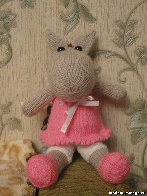 | Вот, лошадка и готова. Муж сказал, что она на бегемотика похожа. Поэтому я назвала ее Бегемотя или просто Мотя. Девочки, подтягивайтесь. Ира, Таня, спасибо за информацию. Большое спасибо автору за это милое чудо! Обязательно напишу стихи про эту милашку.