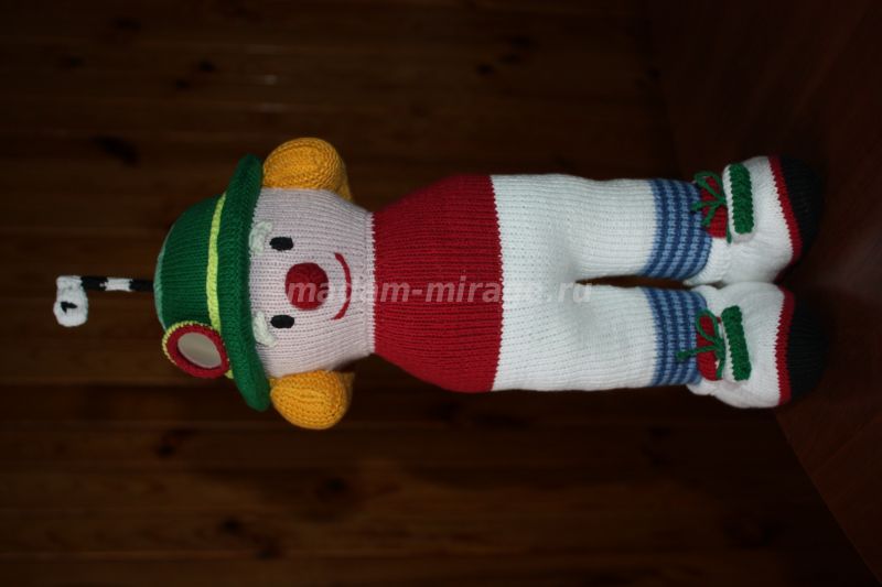 | Nataschuly, Nata4chka, у Вас очень аккуратные клоуны, замечательные! И такие разные. ruzgik05, Когда получилась вязаная деталь, соединяем боковые швы, одновременно слегка набивая. Теперь получившиеся волосы крепим к последнему ряду розовой нитью- лица, проверяя что бы равномерно все получилось.